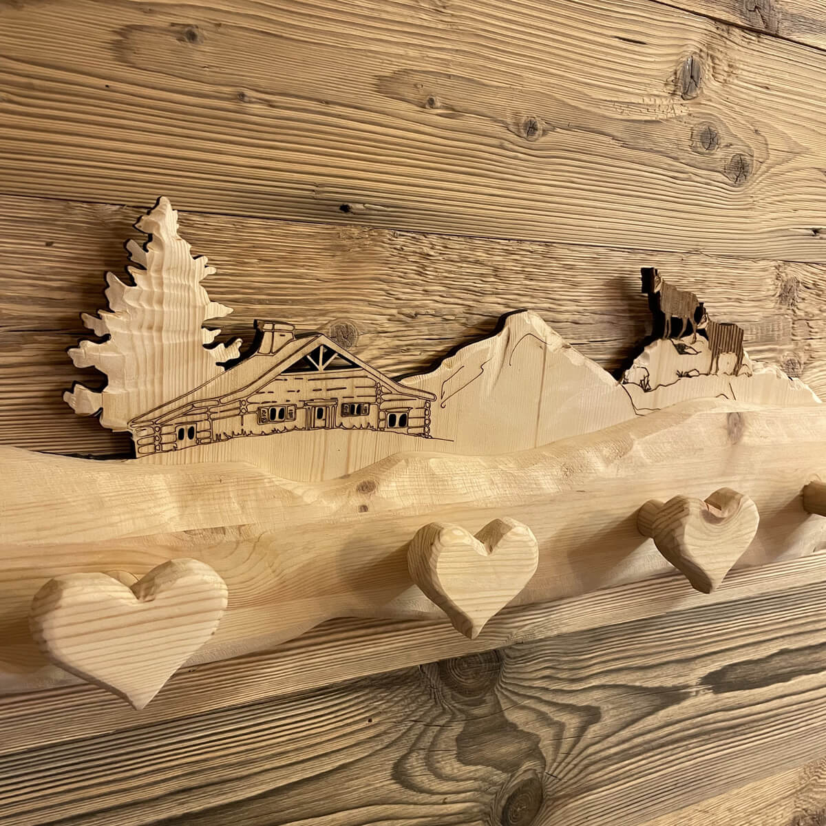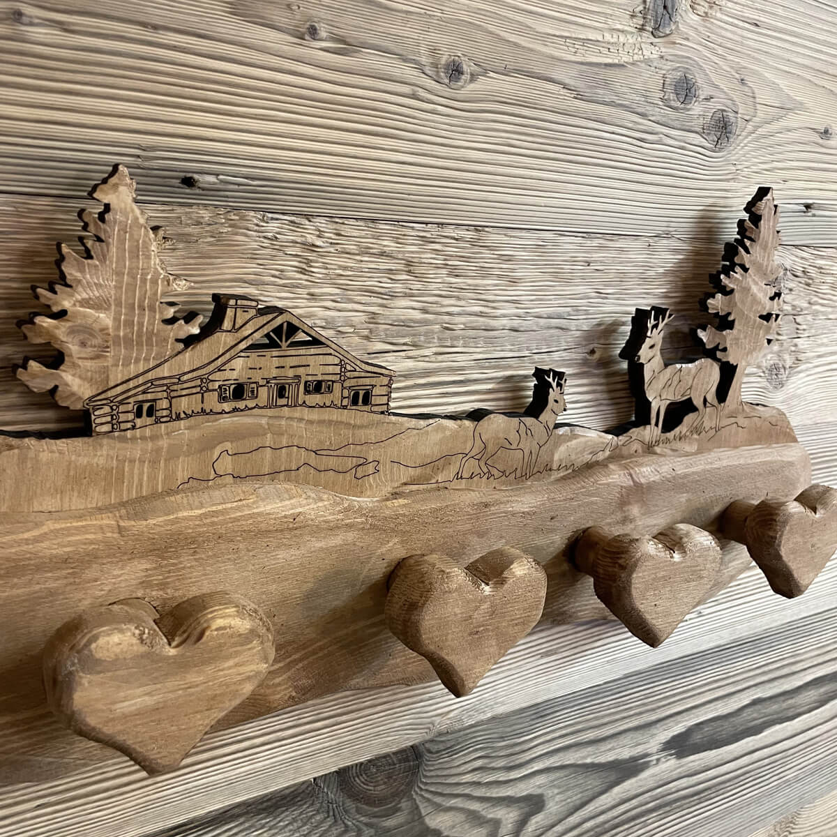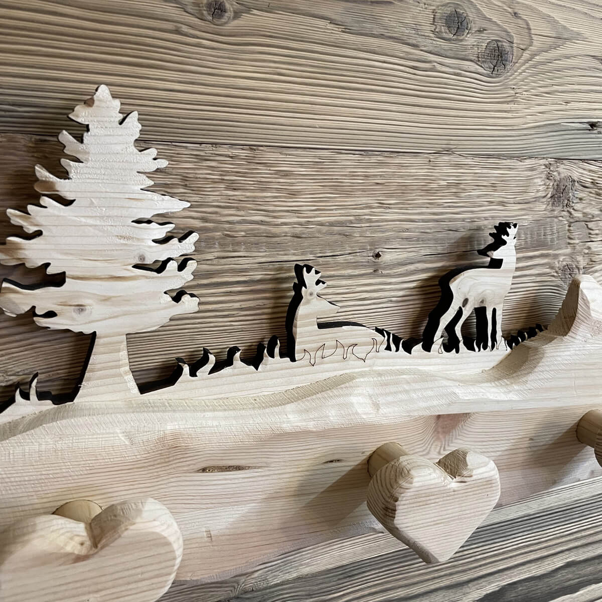Realizziamo nel nostro laboratorio appendiabiti in legno su misura con possibilità di personalizzazione di disegni, colori e forme.