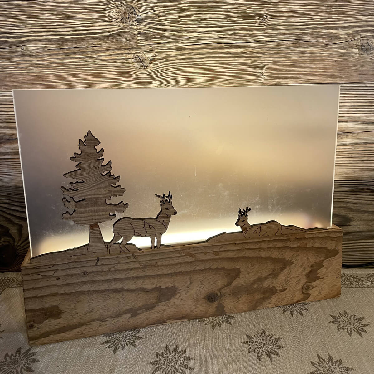 Realizziamo inoltre particolari creazioni con palchi caduchi di cervo (lampadari, apliques…).