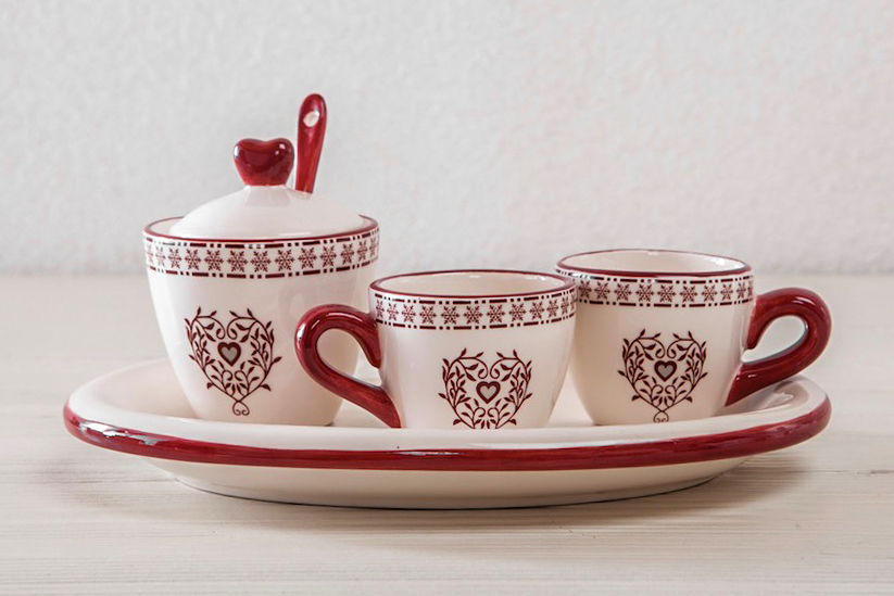 Set di due tazzine con zuccheriera e cucchiaino su elegante vassoio!